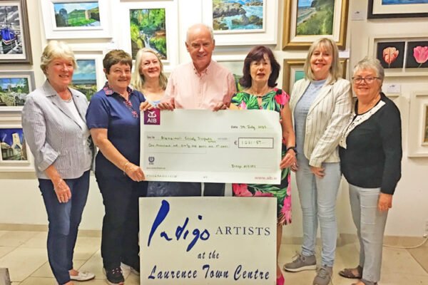 Noel Heeney of the Tredagh Lodge Daycare Centre in Drogheda accepts a cheque from members of Indigo Artists Laurence…