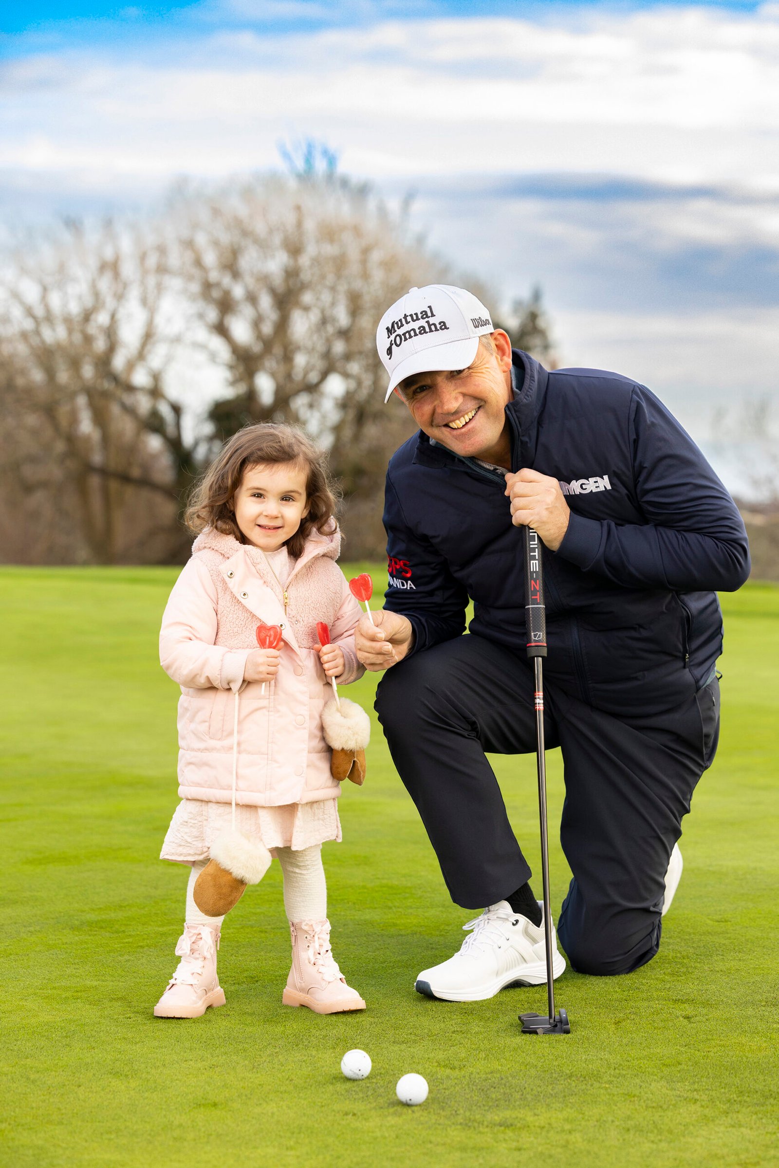 Repro Free: Monday 26th January 2026; Pictured was Padraig Harrington, Patron of OCF with 3 year old Evie McCarthy at the launch of the Oesophageal Cancer Fund (OCF) Lollipop Day 2026, as OCF celebrates 25 years of funding research, supporting patients and driving awareness of this cancer. Lollipop Day takes place on 27 and 28 February, with OCF reminding the public of the importance of recognising early symptoms of oesophageal cancer and the life-saving potential of early diagnosis. Symptoms include difficulty swallowing food, persistent heartburn, reflux, hiccups, unexplained weight loss or pain. Picture Jason Clarke For more information please contact Sadhbh O’Donovan T: +353 1 260 5000 Sadhbh.odonovan@drury.ie www.drury.ie 1st Floor, Westmoreland House, Ranelagh, D06 RX46.
