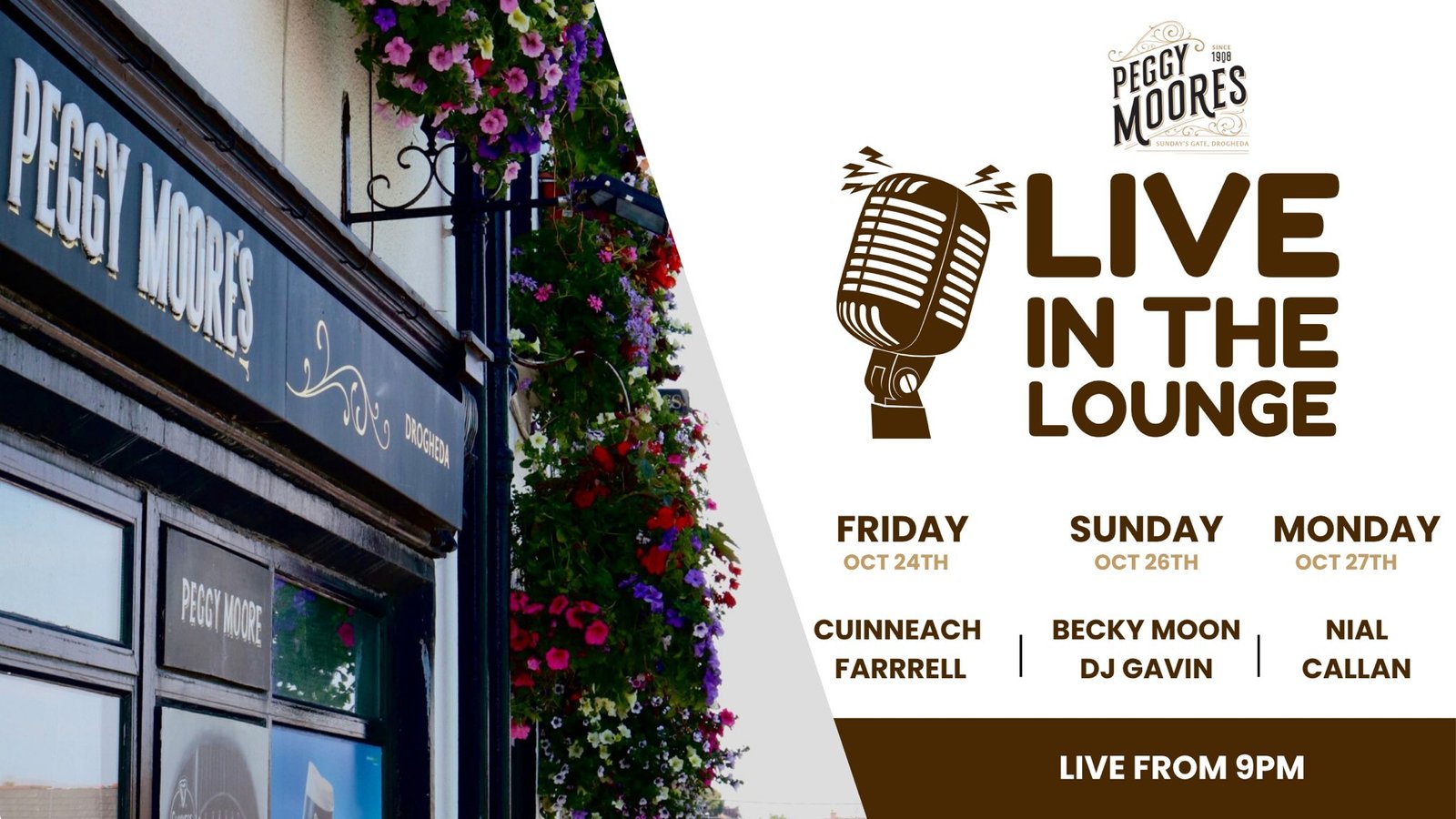 Cuinneach Farrell @ Peggy Moores Cuinneach Farrell Live in the Lounge Live from 9pm Post navigation Previous: Chris Brady @ Peggy MooresNext: Becky Moon and DJ Gavin @ Peggy Moores