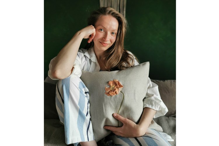 “Fully natural fabric was an obvious choice for me, pure linen became the perfect base for my art. Yes, it is more expensive, yes you have to take care of it and it has its imperfections, but if you treat linen right it will last forever.
