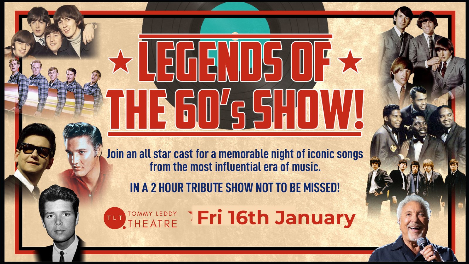 Expect world-class tributes to legendary artists including Elvis Presley, The Beatles, The Monkees, The Rolling Stones, Roy Orbison, Tom Jones, Cliff Richard, The Beach Boys, The Drifters, and many more. With over 40 iconic songs performed live in one night, the show delivers an exhilarating journey through the sounds that shaped a generation.
